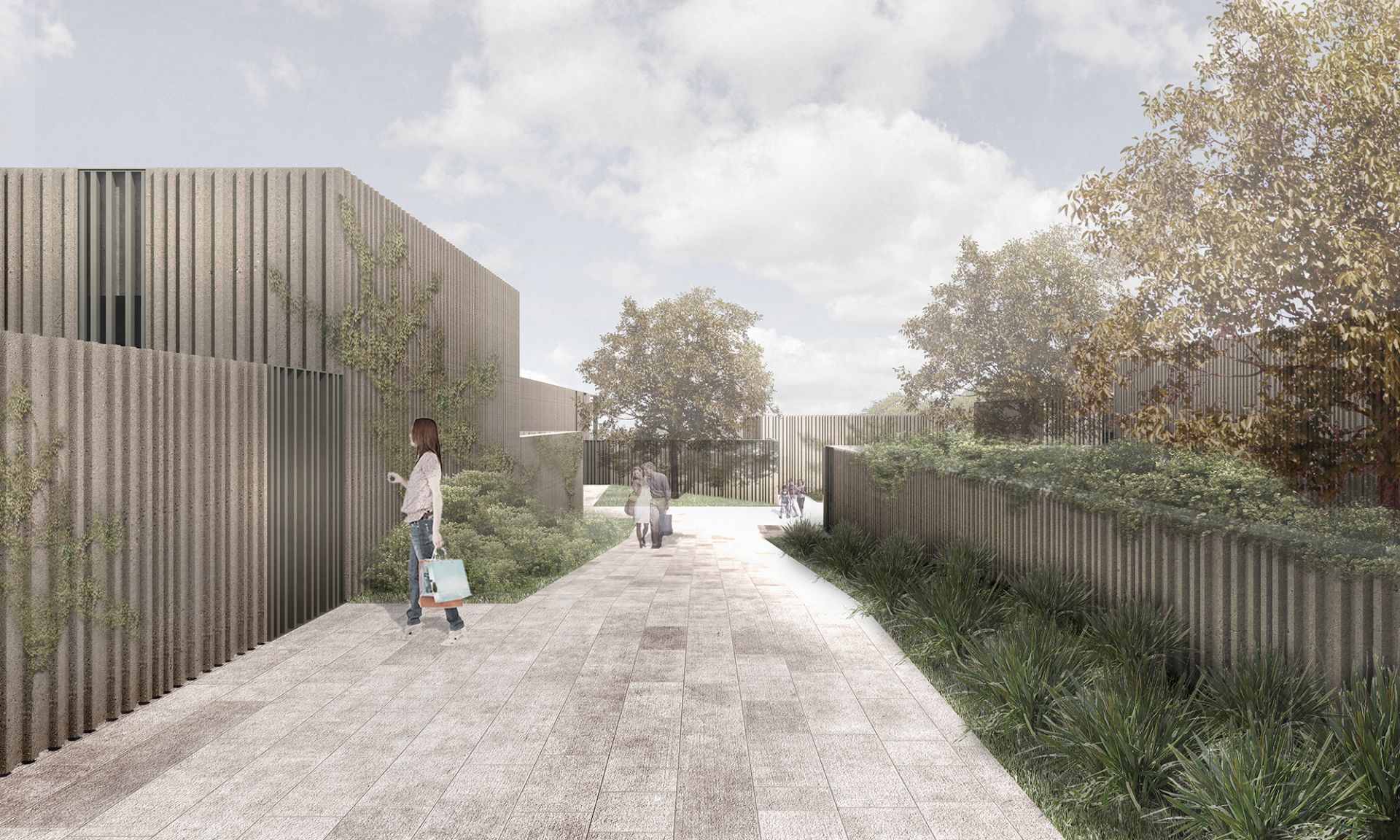 Alla base del progetto vi è quindi la volontà di integrarsi con questo contesto, reinterpretando il sistema aggregativo dei piccoli borghi, caratterizzati da una strada principale e da una piazzetta sulle quali tutti gli edifici si affacciano direttamente, ovvero da spazi comuni che sono centrali nella vita e nelle relazioni degli abitanti.