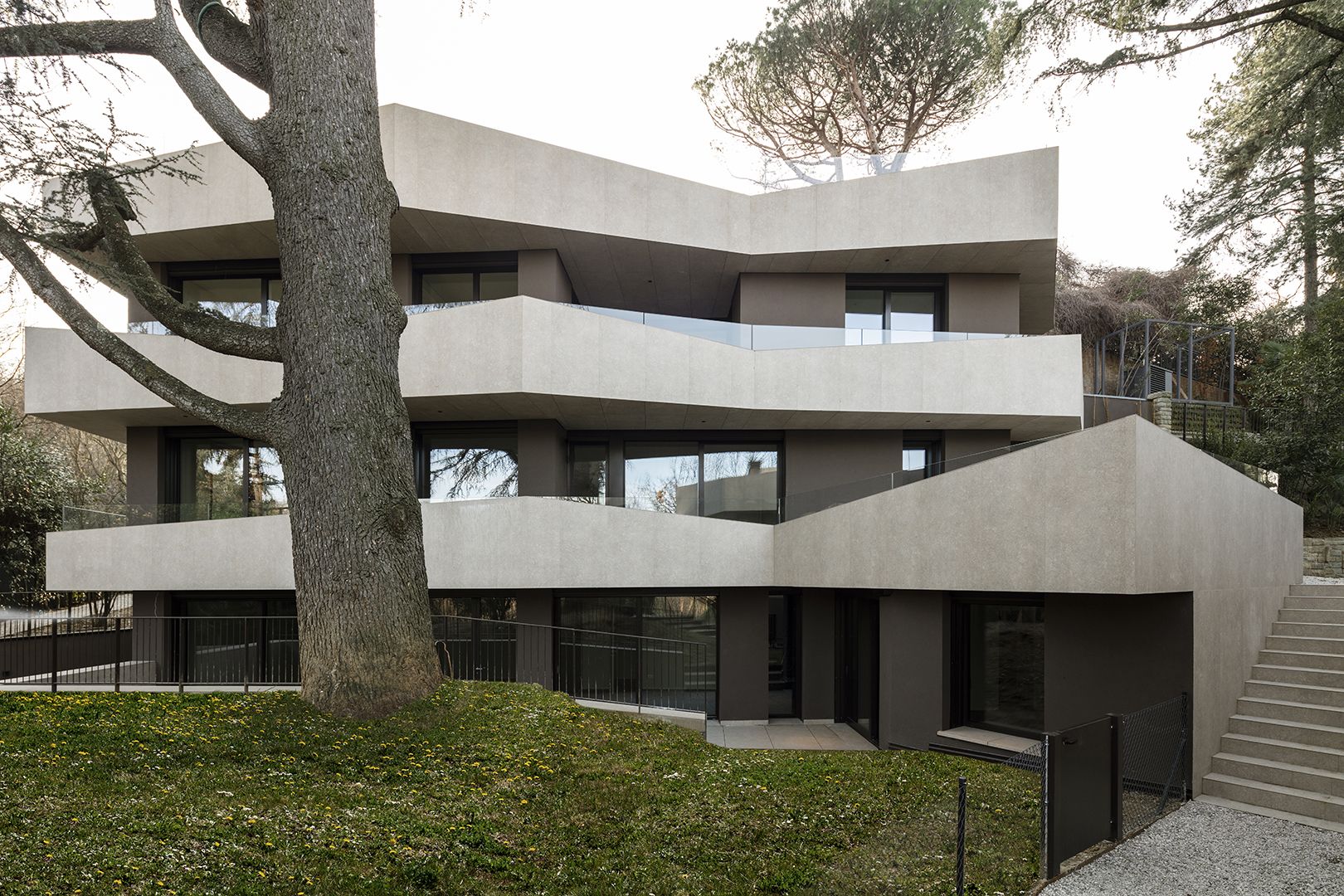 Demolizione e ricostruzione con realizzazione di 7 appartamenti immersi nella prima collina bolognese.