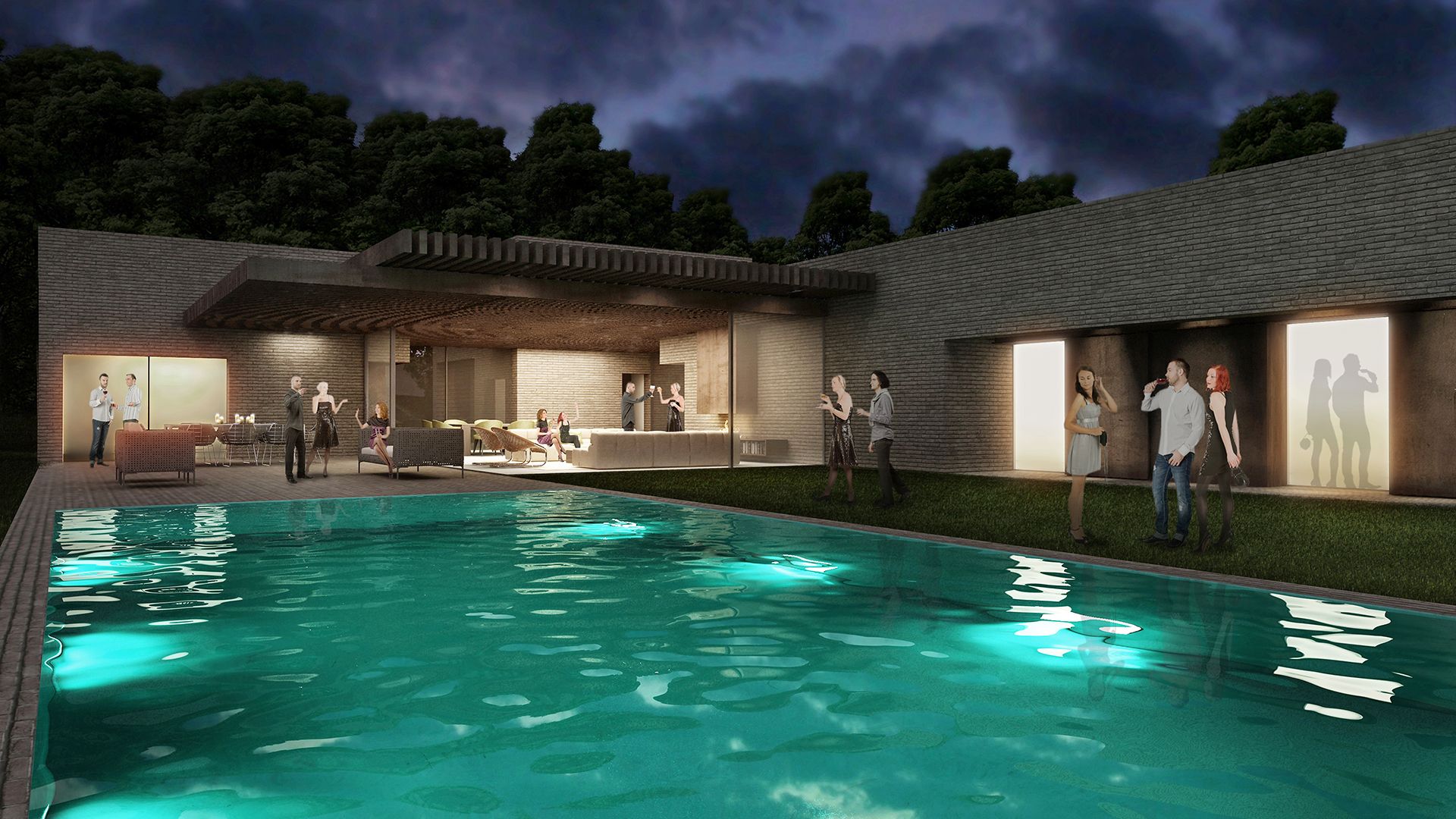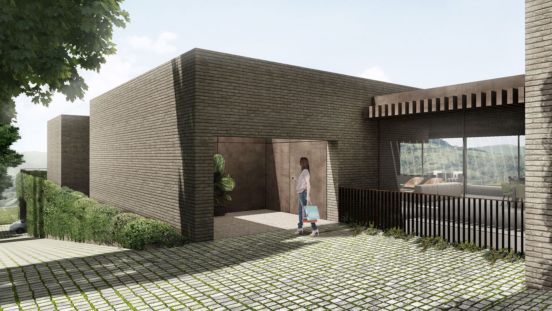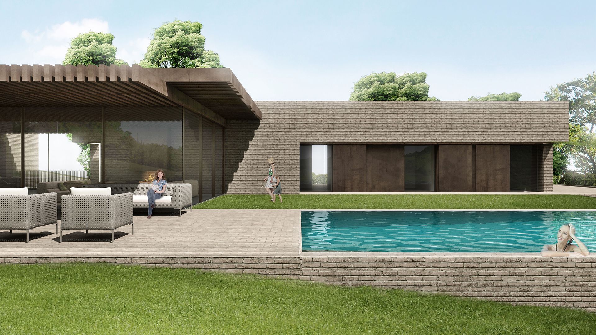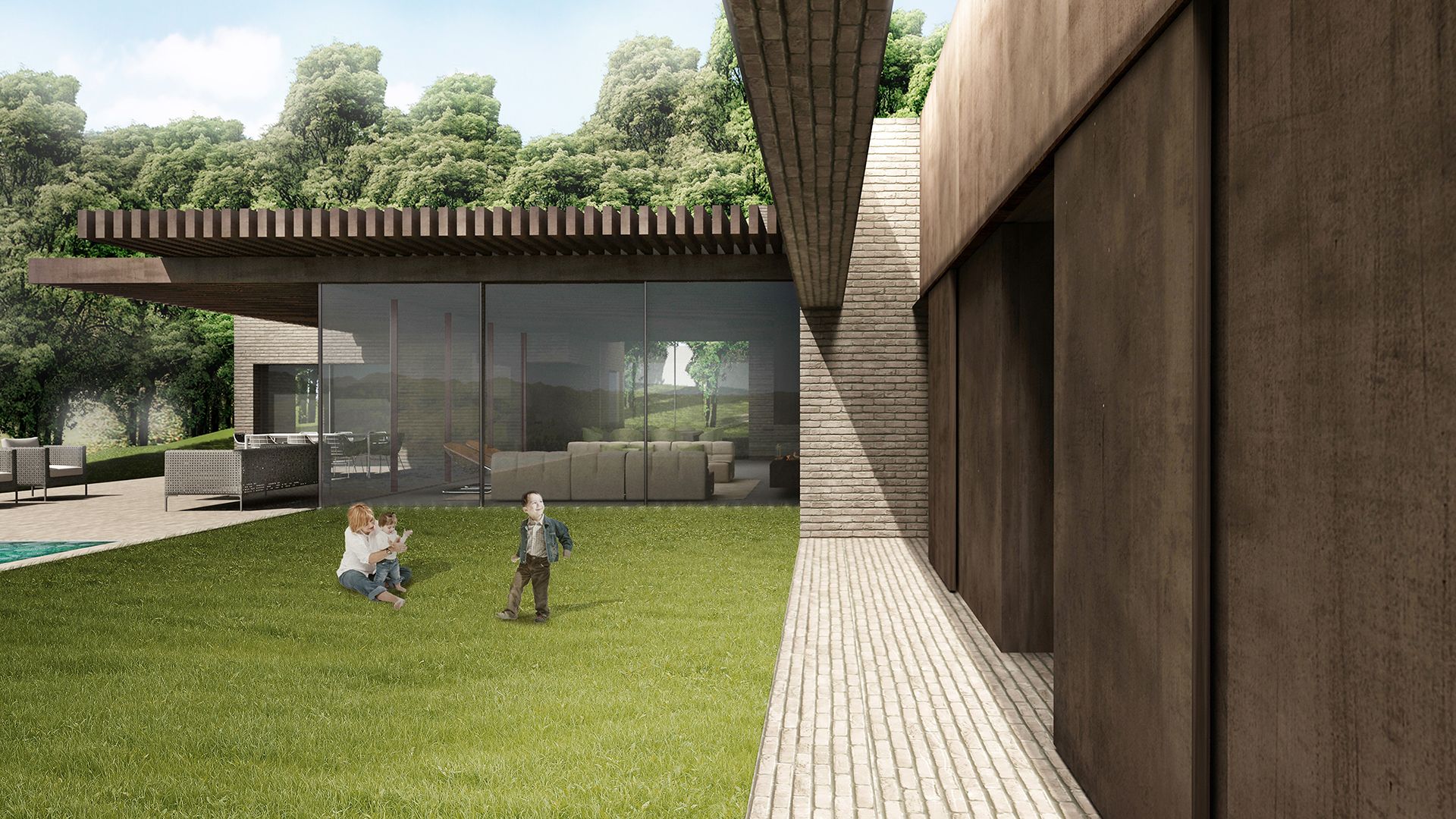 Matrice concettuale è la tipologia tradizionale della corte colonica, che vede diversi fabbricati separati e al tempo stesso uniti dallo spazio aperto dell'aia; la massa della villa viene così scomposta in più volumi, destinati rispettivamente alla stanza padronale, al blocco che ospita le camere dei figli e alla cucina. Al centro, elemento di snodo e raccordo, l'ampia area living, spazio della socialità e dell'incontro tra i vari membri della famiglia.