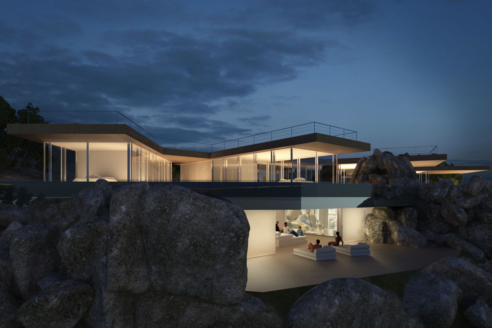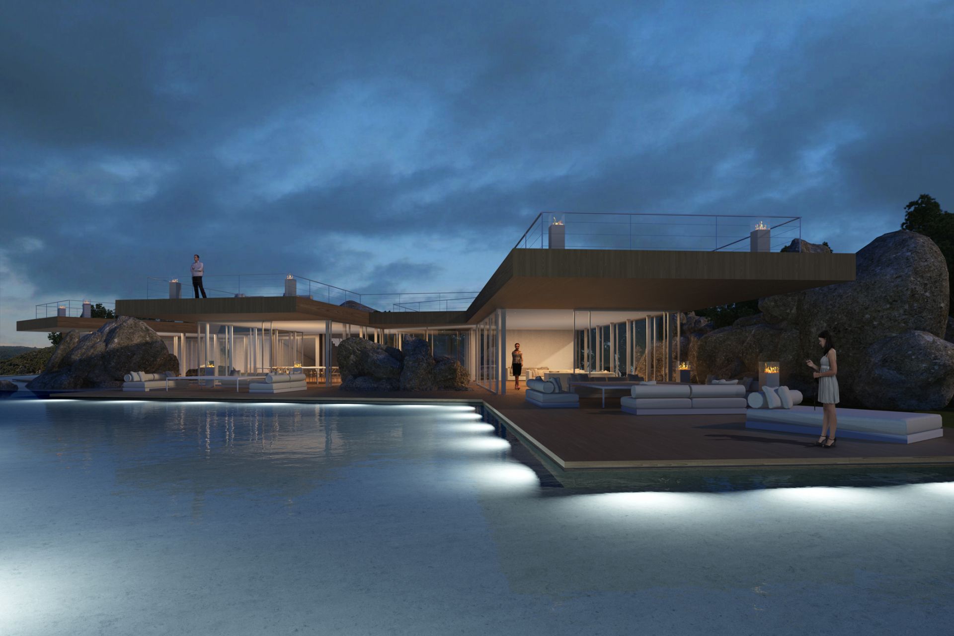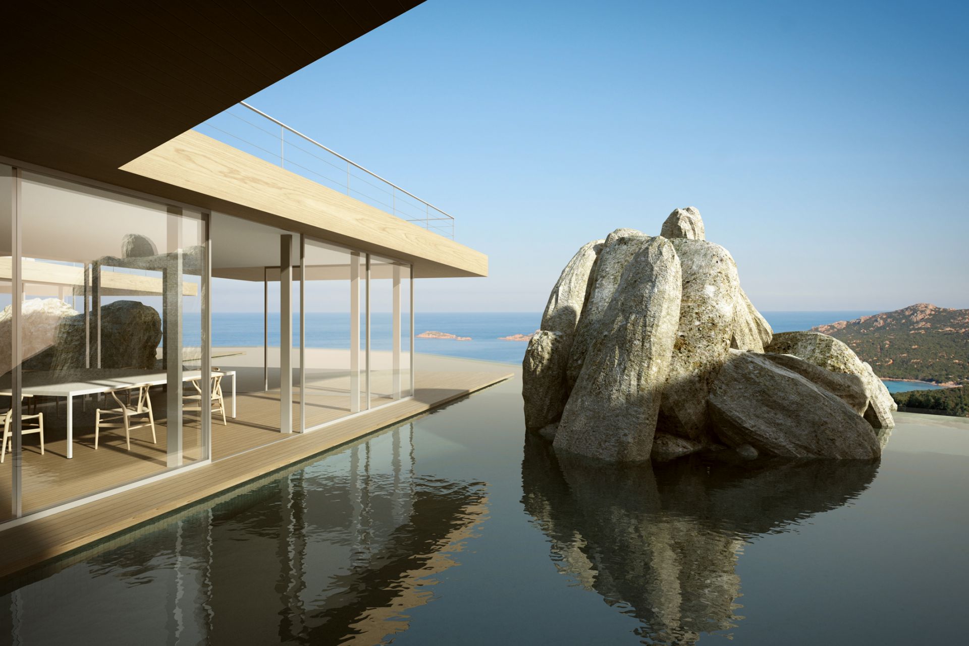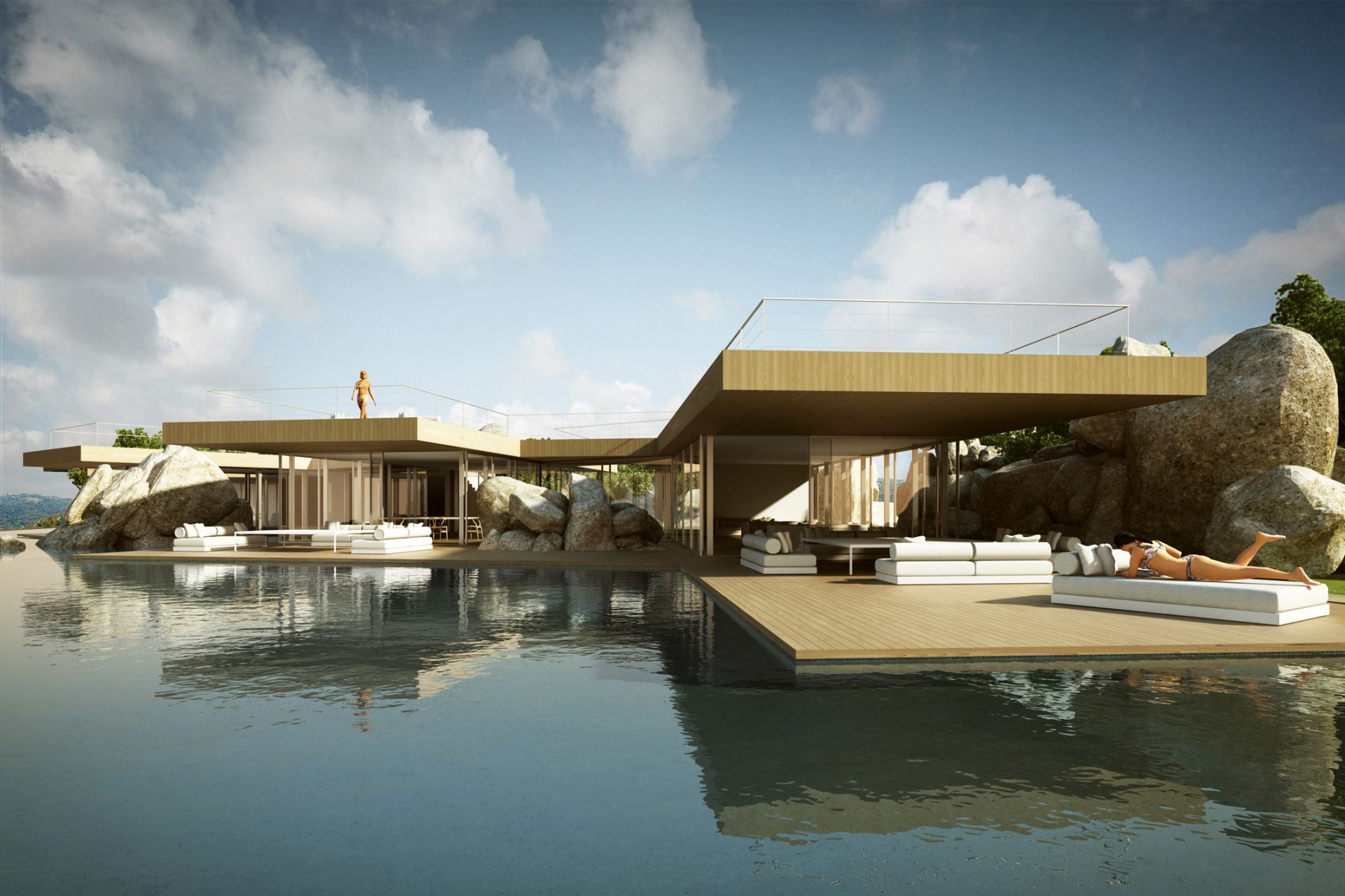 Il progetto prevede l'insediamento di una residenza privata sulla costa caratterizzata da speroni di granito affioranti e da una rigogliosa vegetazione, alternati a radure che permettono viste sul paesaggio circostante e, in lontananza, sul mare.